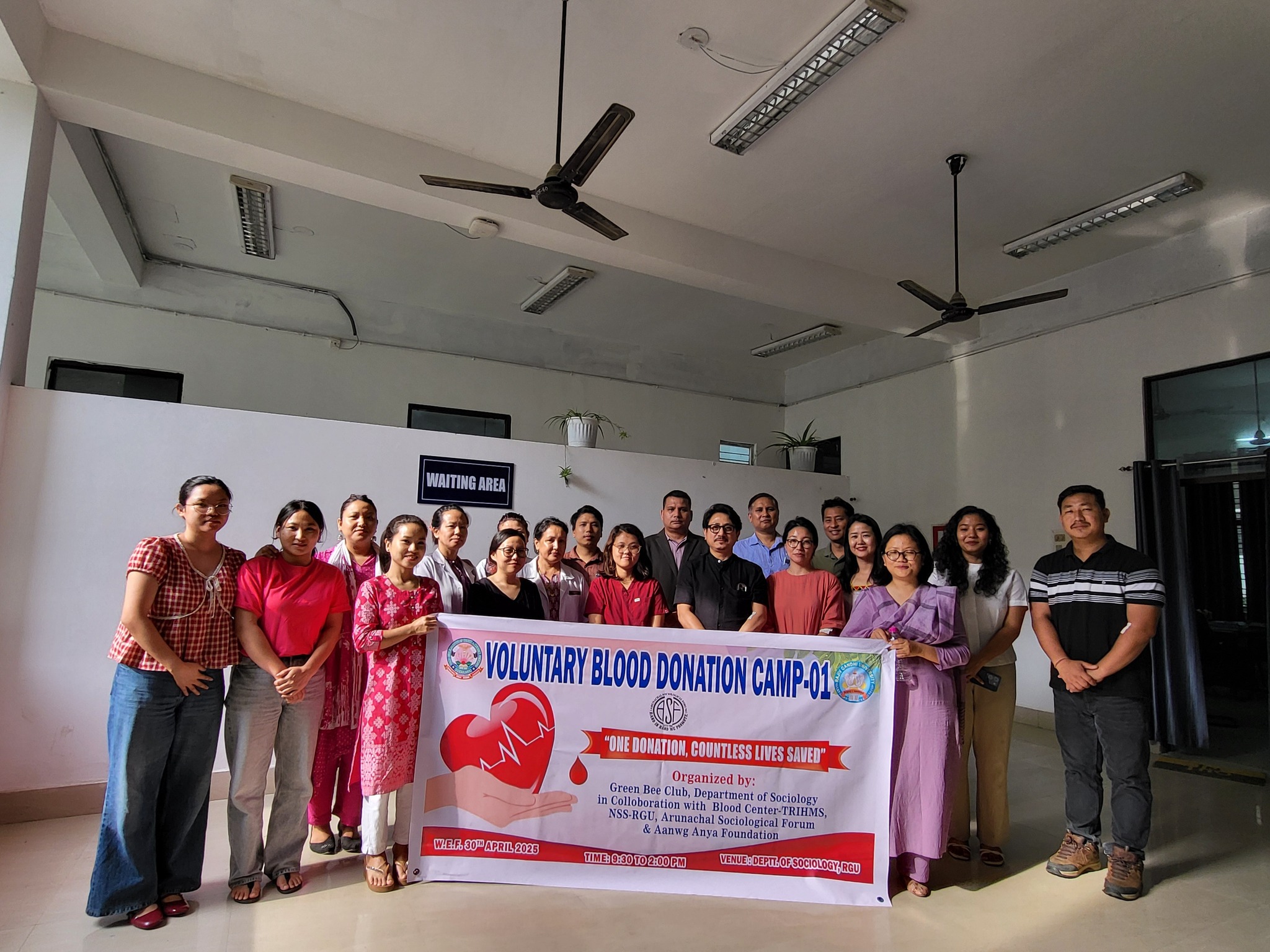 A Voluntary Blood Donation Camp was organized on 30th April 2025 at Rajiv Gandhi University under the theme “Donate Blood, Save Lives.”